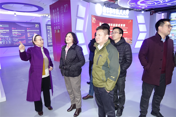 姜丽萍(左二)一行参观南航70周年科研成果展