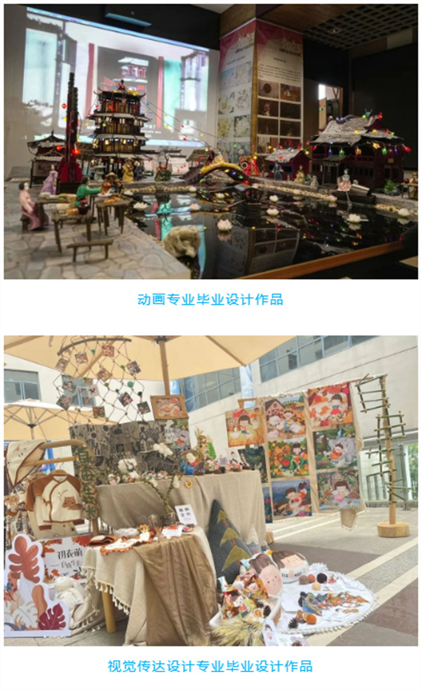 “科技赋能艺术”是本届毕业设计展的主题,展出的200余件毕业设计作品充分展现了毕业生们对艺术与科技交叉融合的创新探索,实现了艺术与技术的交融互通。动画专业突出表现弘扬传统文化和科技赋能产教融合的主旨,通过前期校企合作项目和对南京地区的文化调研,形成了一系列动画、动态绘本和插画作品,部分作品运用三维成像设备、交互影像装置进行展示,凸显了动画专业在数字化、智能化探索的特色成果。数字媒体艺术专业探索传统文化元素的数字化呈现,大胆探索艺术与科技性融合,运用虚拟现实、交互投影、互动装置等先进技术,将设计与现代科技相结合,探索元宇宙场景的落地应用,呈现出数字媒体艺术的多样性和创新性。视觉传达设计专业积极推进数字化转型,定位文化创意,多维融合创新,在本次毕设中创新运用了AR技术展现作品创意,以多种视觉载体呈现新时代设计类毕业生的专业风采。到访嘉宾在观展过程中对动漫学院各专业的人才培养成效给予高度肯定,观展企业对未就业的毕业生也产生浓厚兴趣,毕业展的成功举办进一步提升了动漫学院各专业在行业内的影响力。