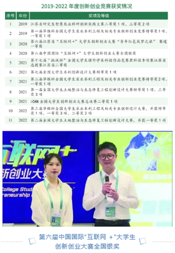 学院育人成效显著,近年来,培养出多名以江苏省优秀毕业生、省三好学生、省优秀学生干部等为代表的优秀学生。学生在国家级、省级重要赛事中屡获佳绩,先后获得中国国际“互联网+”大学生创新创业大赛全国银奖;江苏省“互联网+”大学生创新创业大赛“青年红色筑梦之旅”赛道一等奖;“挑战杯”全国大学生课外学术科技作品竞赛黑科技专项赛江苏省选拔赛江苏省二等奖;华维杯全国大学生农业水利工程及相关专业创新创业竞赛特等奖;全国水利创新设计大赛特等奖;全国大学生土地整治与生态修复工程创新设计大赛特等奖等多个国家级、省级奖项。