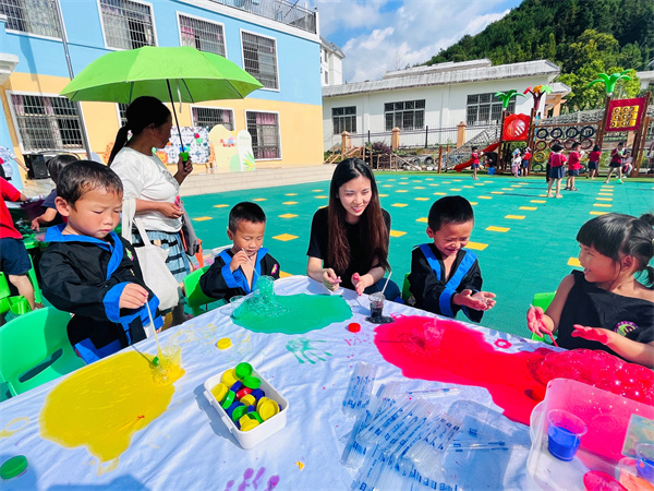 “姐姐老师,你们还来吗?”小朋友拉着学前学院大学生志愿者的手充满期待地问。“老师们还来哦。”被小朋友拉着手的志愿者学生蹲下来微笑着回答,她是20级学前乡村定向生张珂。听,希望的种子在小朋友的心里悄悄发芽,恣意生长。