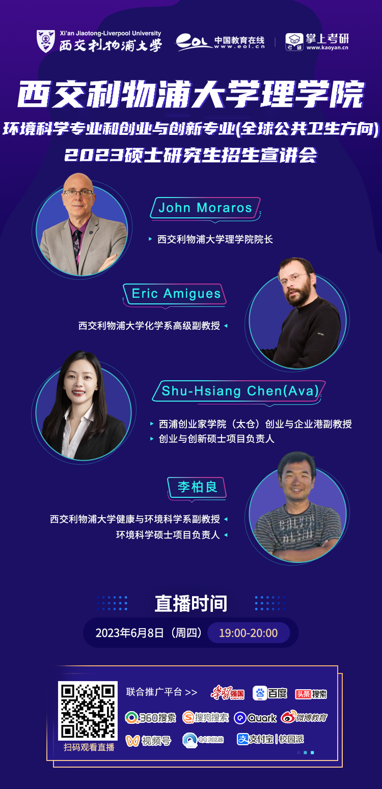 直播预告丨西交利物浦大学理学院环境科学专业和创业与创新专业(全球公共卫生方向)2023硕士研究生招生宣讲会6月8日准时开启!