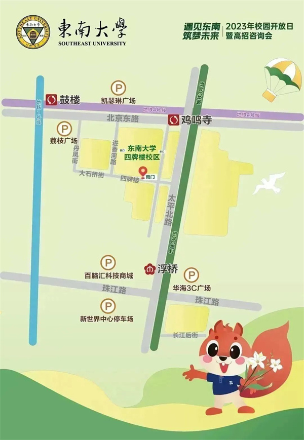 开放日当天可从四牌楼校区南门、西门、东门进入学校。学生凭高考准考证或高中学生证进入校园,家长刷身份证可陪同入校。(建议1-2位家长陪同,点击下方二维码即可预约哦)