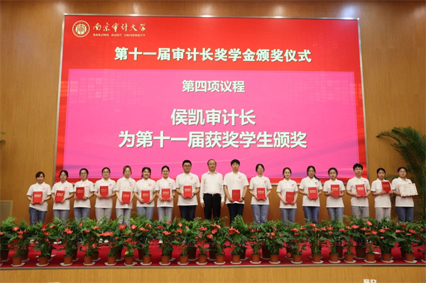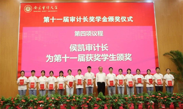6月19日下午,第十一届审计长奖学金颁奖仪式在审计署审计干部教育学院国际报告厅举行。审计署党组书记、审计长侯凯,审计署涉外审计司司长陈达时,审计署驻南京特派员办事处特派员吕建伟,中共审计署党校常务副校长、审计干部教育学院院长蔡峰,江苏省审计厅党组书记、厅长刘军,我校党委书记晏维龙、校长董必荣等全体校领导出席。学校相关职能部门负责人,各学院、书院相关负责人,师生代表及往届审计长奖学金获得者代表参加颁奖仪式。颁奖仪式由晏维龙主持。
