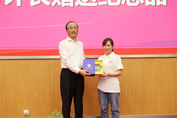 来自越南最高审计机关的黎冬菊(Le Dong Cuc)同学代表全体获奖学生向侯凯审计长赠送纪念品。