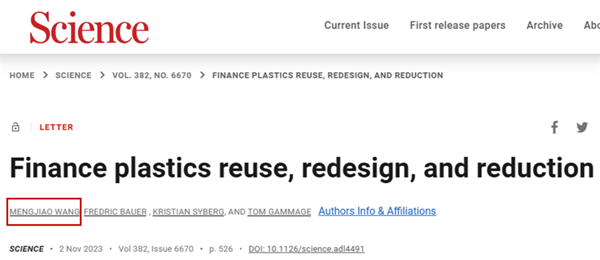 塑料条约政府间第三届谈判会议(INC-3)即将于2023年11月13日至19日在联合国环境规划署 (UNEP) 总部肯尼亚内罗毕举行。近日,南京大学校友,英国埃克塞特大学荣誉研究员Wang Mengjiao分别以第一作者和合作作者在Science连发3篇Letter,为《全球塑料条约》的制定献策献计,提出“加强塑料中的化学简化和跟踪”、“《全球塑料条约》必须以生态系统为中心”和“为塑料再利用、重新设计和减少使用方案,提供资金支持”等观点,为全球塑料污染治理指明了方向。