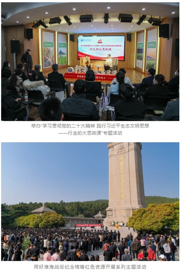 充分利用淮海战役纪念馆、邳州王杰纪念馆、贾汪区马庄村等教育资源,抓好日常思政教育活动,连续7年发起9所驻苏部属高校“弘扬淮海战役精神”教育实践活动,参与学生达到5万余人次。