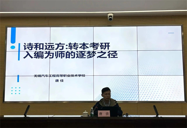 智能装备与汽车工程学院2016届毕业生唐佳以“诗和远方:转本考研入编为师的逐梦之径”为题,给同学们分享了自己勤奋努力转本、考研及考编任教的发展历程。