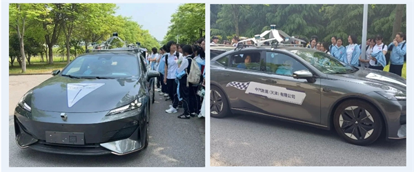 同学们在现场进行了智能化汽车操作驾驶,感受智能网联汽车发展的新技术。