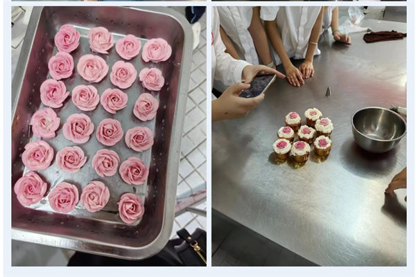 同学们通过体验西点烘焙项目,学习纸杯蛋糕制作的全过程,以及装饰的美学法则,锻炼生活实践能力。