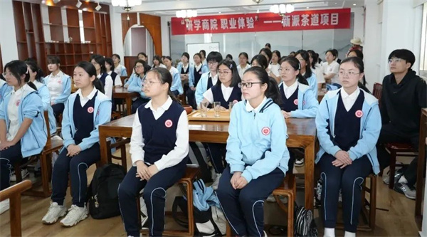 同学们通过体验新派茶道项目,学习茶叶的分类、冲泡技巧和基本的茶道礼仪,品尝自己制作的甘茗。