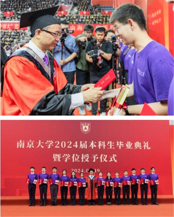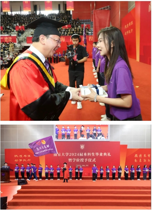 谈哲敏为向南京大学2024届本科优秀毕业生代表颁发证书。