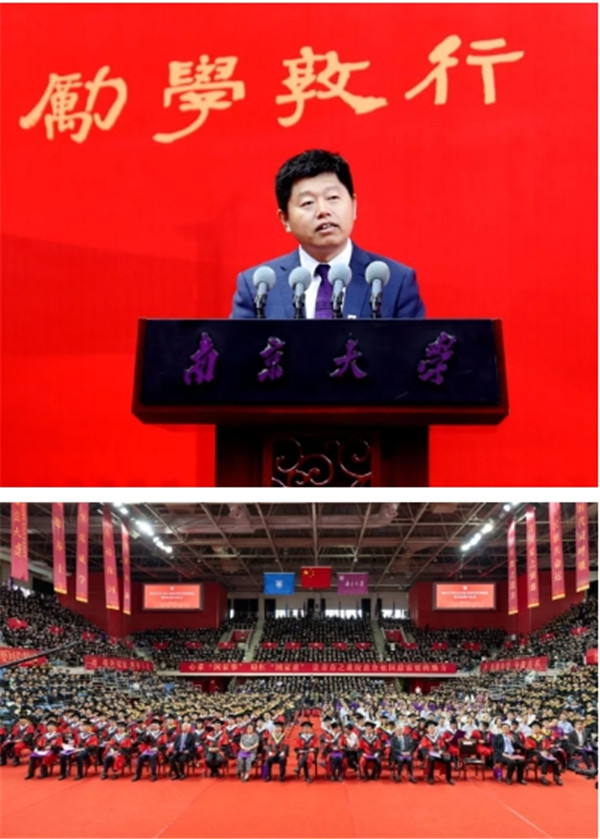 “追求‘第一’,是我们共同的经历。大家在‘第一个南大’,扣好了人生‘第一粒纽扣’,播撒下学术‘第一颗种子’,弹奏出奋进‘第一曲乐章’,留下了最美好的回忆。”谭铁牛表示,大家即将走上服务人民的岗位,奔赴祖国需要的地方,建功立业、奉献青春。值此临别之际,他希望毕业生带上四句寄语一起前行、一路成长:希望同学们牢记报效国家、服务人民的最高追求,无论何时何地,始终将南大人深沉隽永的报国情怀刻在心中;希望同学们秉承诚朴雄伟、励学敦行的南大校训,无论何时何地,始终将南大人历久弥新的诚朴精神印入脑海;希望同学们坚守开放包容、追求卓越的奋进目标,无论何时何地,始终将南大人矢志不渝的卓越追求扛在肩上;希望同学们保持乐观向上、自信自强的阳光心态,无论何时何地,始终将南大人坚忍不拔的顽强意志植入灵魂。