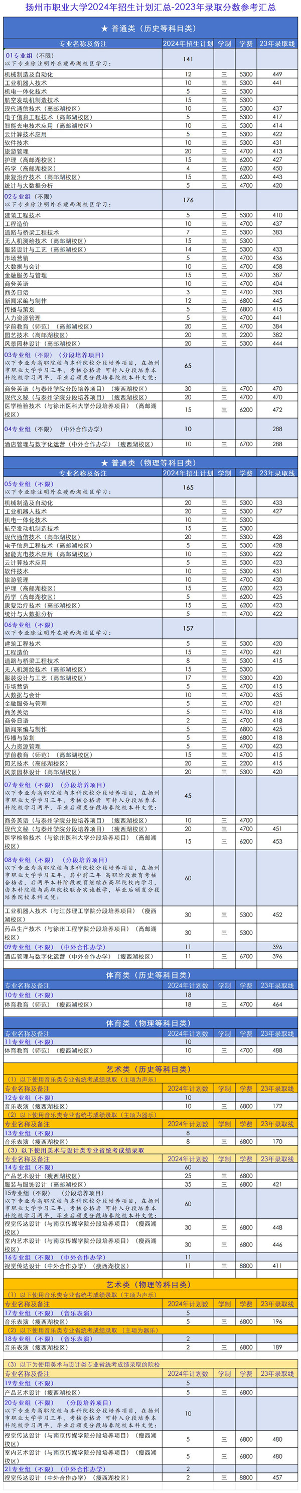 快收藏!扬州市职业大学2024年招生计划