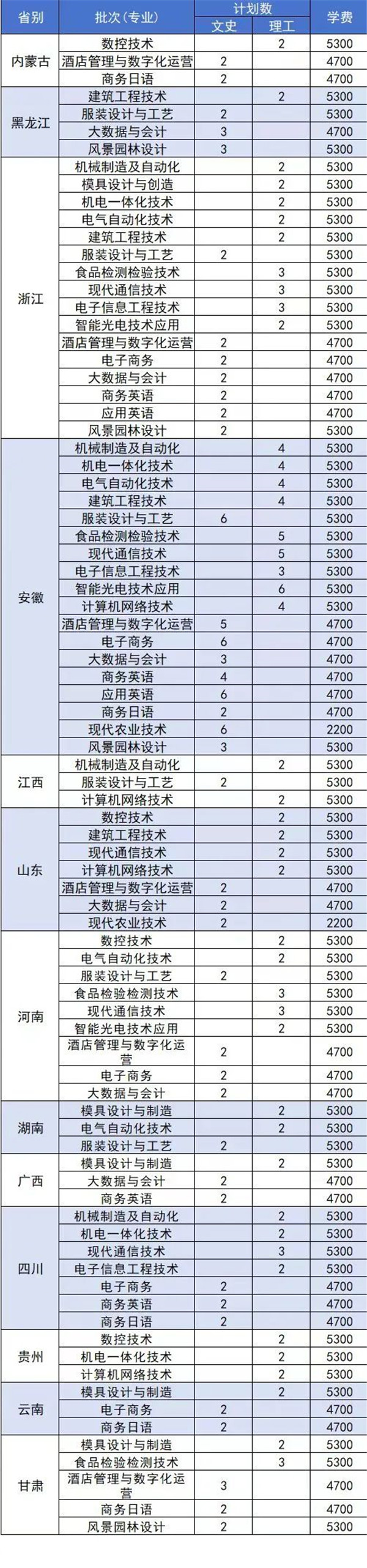 江苏省外招生计划表
