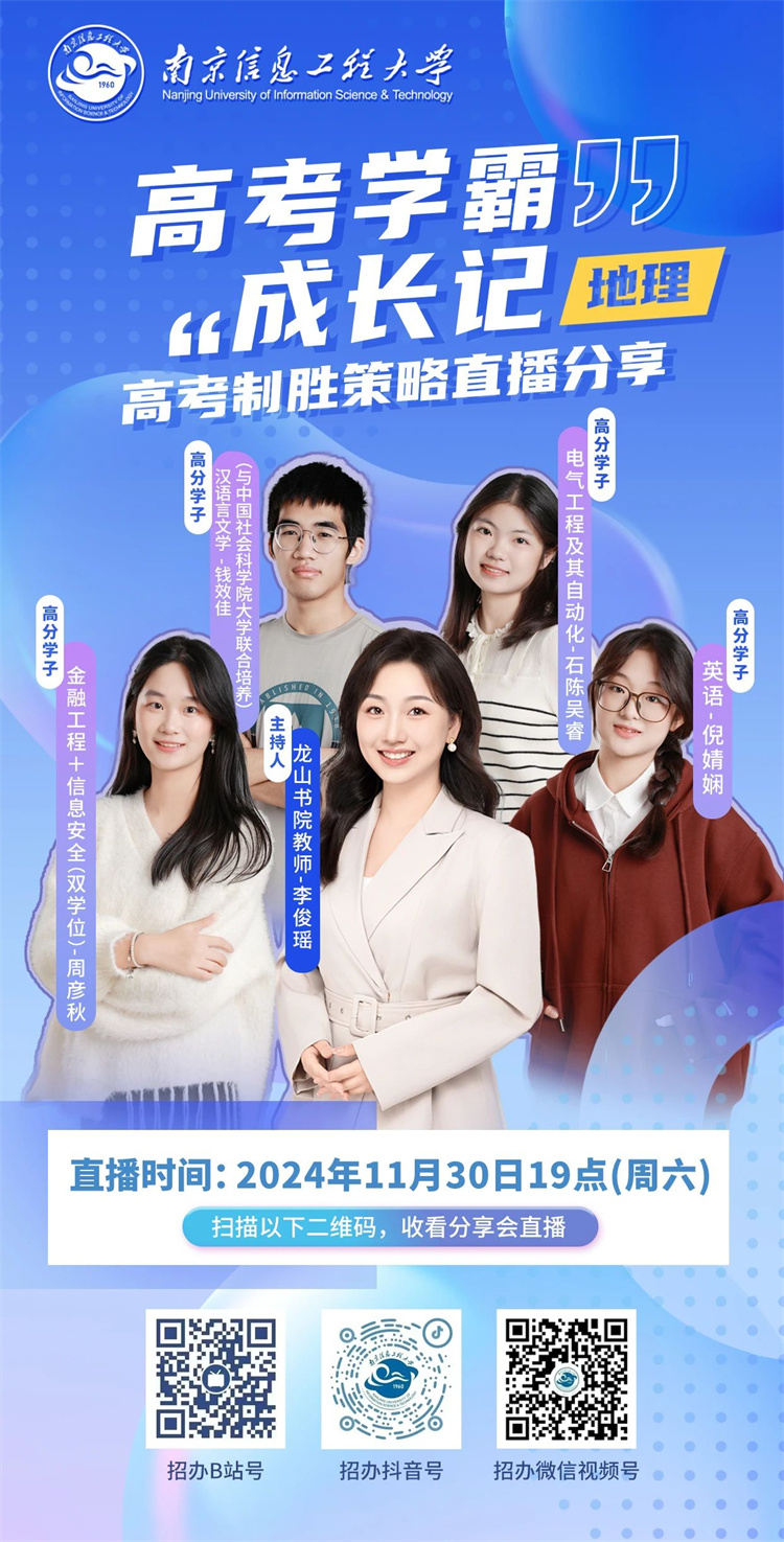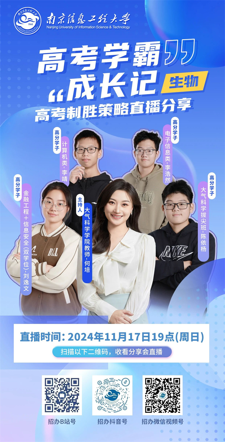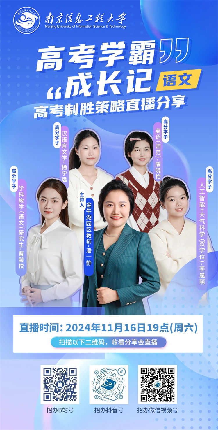 南京信息工程大学9场直播!38位高考高分学霸分享制胜秘笈!