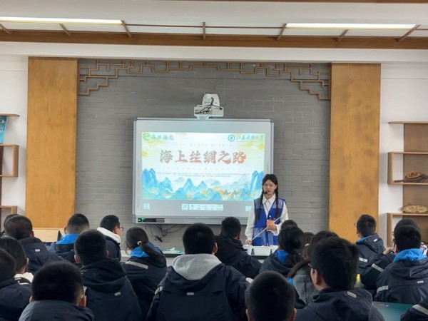 12月10日上午,江苏科技大学外国语学院“海丝海思”团队走进镇江青少年综合实践基地,开展大思政课实践教学活动。团队志愿者们为实践基地的青少年学生精心准备了一场题为“海上丝绸之路”的海洋文化宣讲。此次活动旨在通过生动有趣、寓教于乐的形式,让青少年近距离感受海上丝绸之路的活力与魅力,激发他们对海洋文化的兴趣与探索精神,培育全球视野,增强文化自信。