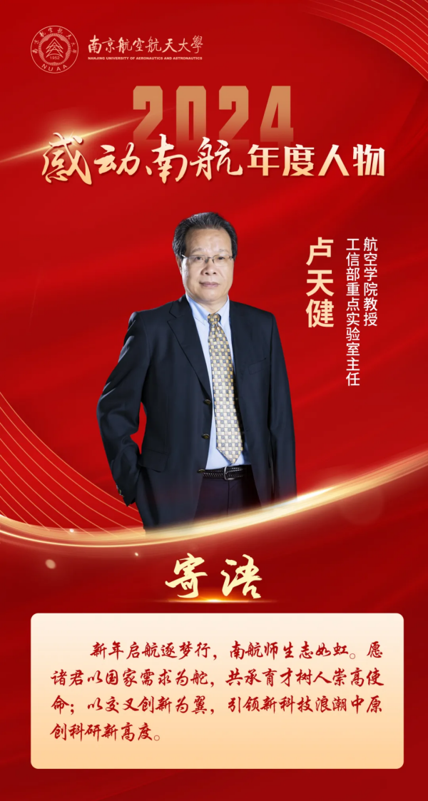 在辞旧迎新之际,南京航空航天大学2024年“感动南航”年度人物评选结果正式揭晓。这群平凡而又不凡的南航人,以开拓创新的精神和年复一年的坚守,为南航的发展贡献了磅礴力量,感动了无数师生。