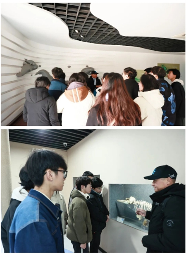 在保护区宣教馆(标本馆),章贤老师向大家详细介绍了鲸类的进化、白鱀豚和长江江豚的生物学和生态学特征等知识,馆里不少标本由章老师亲自参与制作,他还向大家介绍了部分标本背后的故事。大家意犹未尽,参观结束后,章贤老师又为大家带来了《“长江女神”白鱀豚的故事》专题报告,讲述了白鱀豚名字的由来、保护的历程、“功能性灭绝”的思考,与大家分享了上世纪八九十年代他用相机记录下的珍贵的白鱀豚影像。大家针对“白鱀豚和长江江豚的生态位”“为什么要保护长江江豚”等话题展开讨论,纷纷发表自己的见解。白鱀豚的命运为人类敲响了警钟,我们绝不能让白鱀豚的今天成为长江江豚的明天。