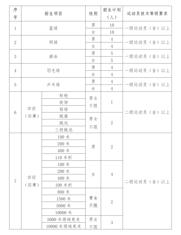 (二)具备与我校招生项目对应的运动员技术等级称号。运动员技术等级证书审批日期为2015年1月1日至2025年3月10日。考生运动员技术等级以“国家体育总局运动员技术等级系统”公示的数据信息为准。