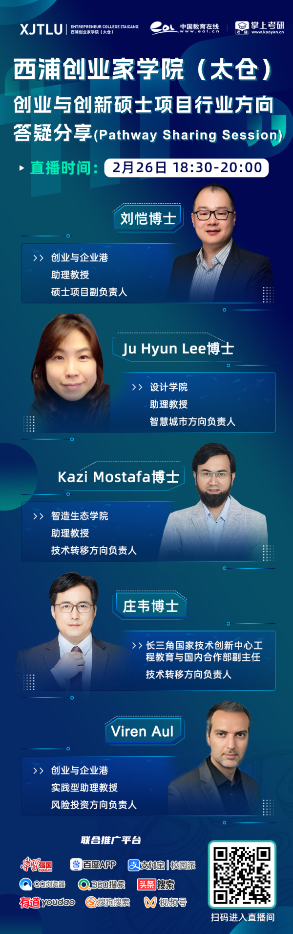 2月26日,西交利物浦大学西浦创业家学院(太仓)创业与创新硕士项目行业方向答疑分享准时开启!
