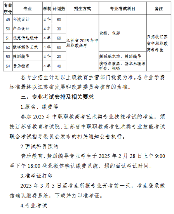 南京艺术学院2025年江苏省中职职教高考招生简章
