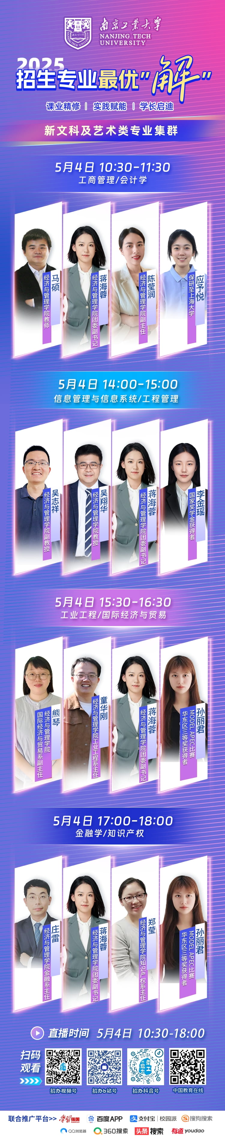 快来扫码观看直播,一起探索南京工业大学的专业魅力吧!