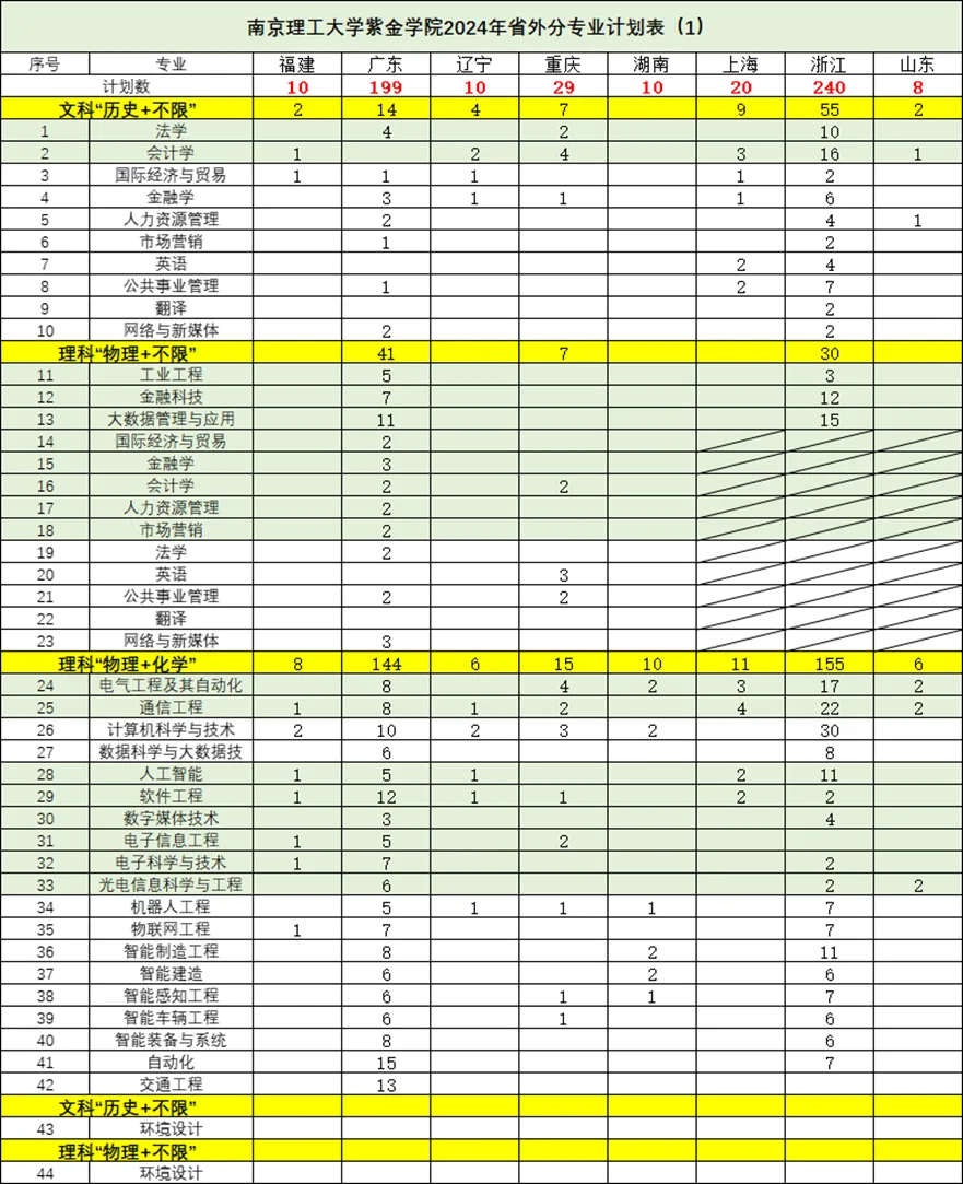 为了让广大考生和家长更好地了解我校招生计划,现公布南京理工大学紫金学院2024年分省分专业计划表: