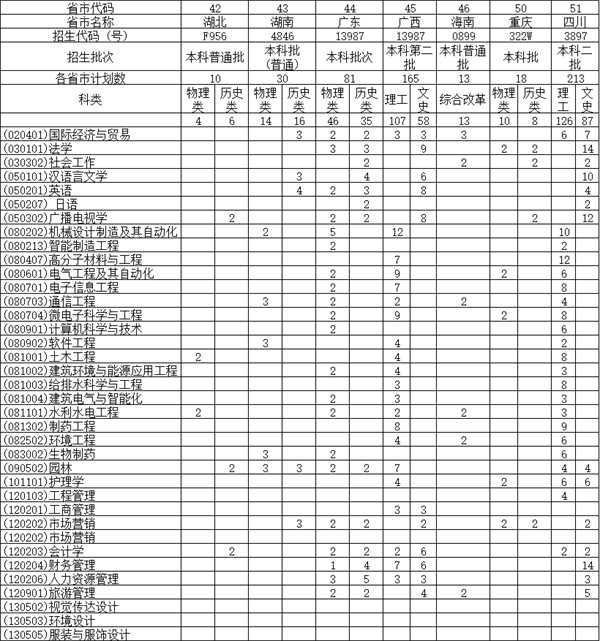 03 湖北省、湖南省、广东省、广西省、海南省、重庆市、四川省分专业招生计划一览表