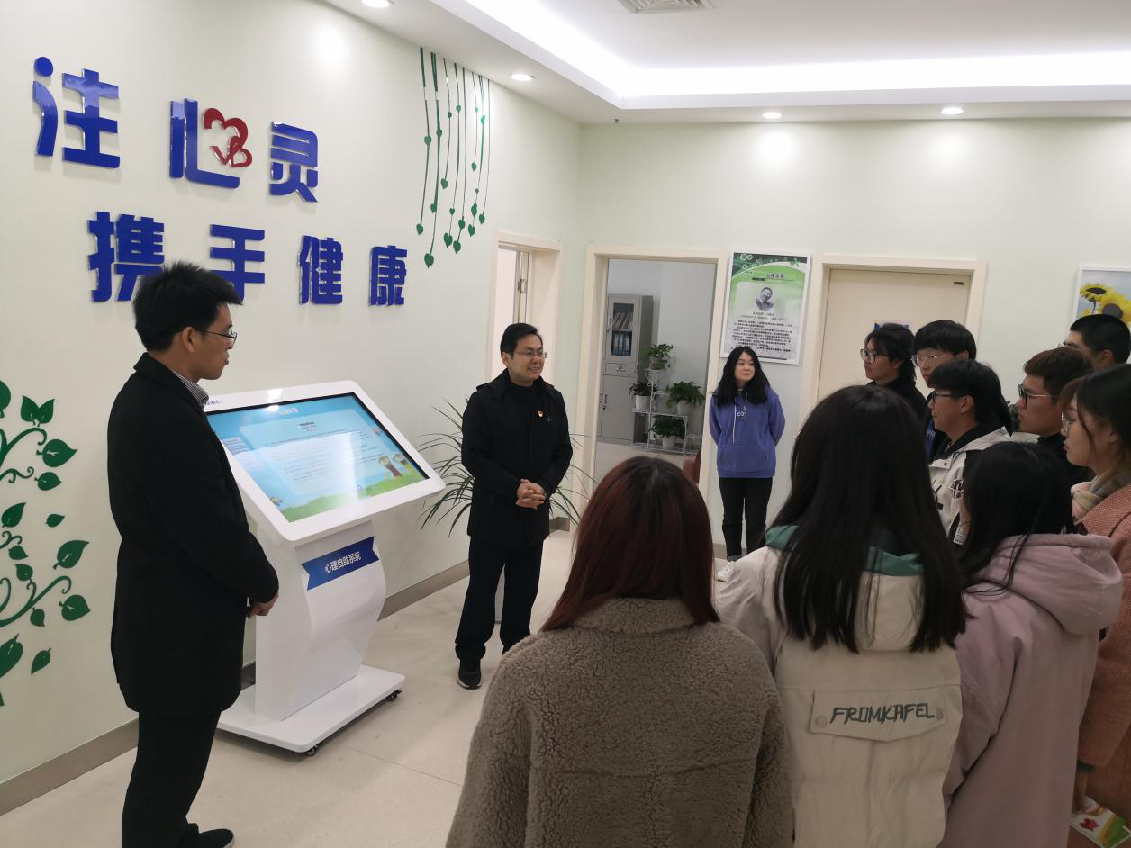 在接待大厅里有一台自助仪,同学们可以通过这台仪器自助进行心理科普、放松训练、心理测试、咨询预约等。同学们对这台功能强大的自助仪充满好奇,在友好的界面上,同学们动动手指就可以获得想要的帮助,所以大家称其为暖心的“大白”。