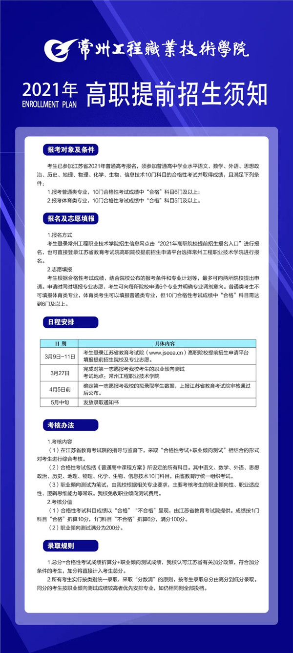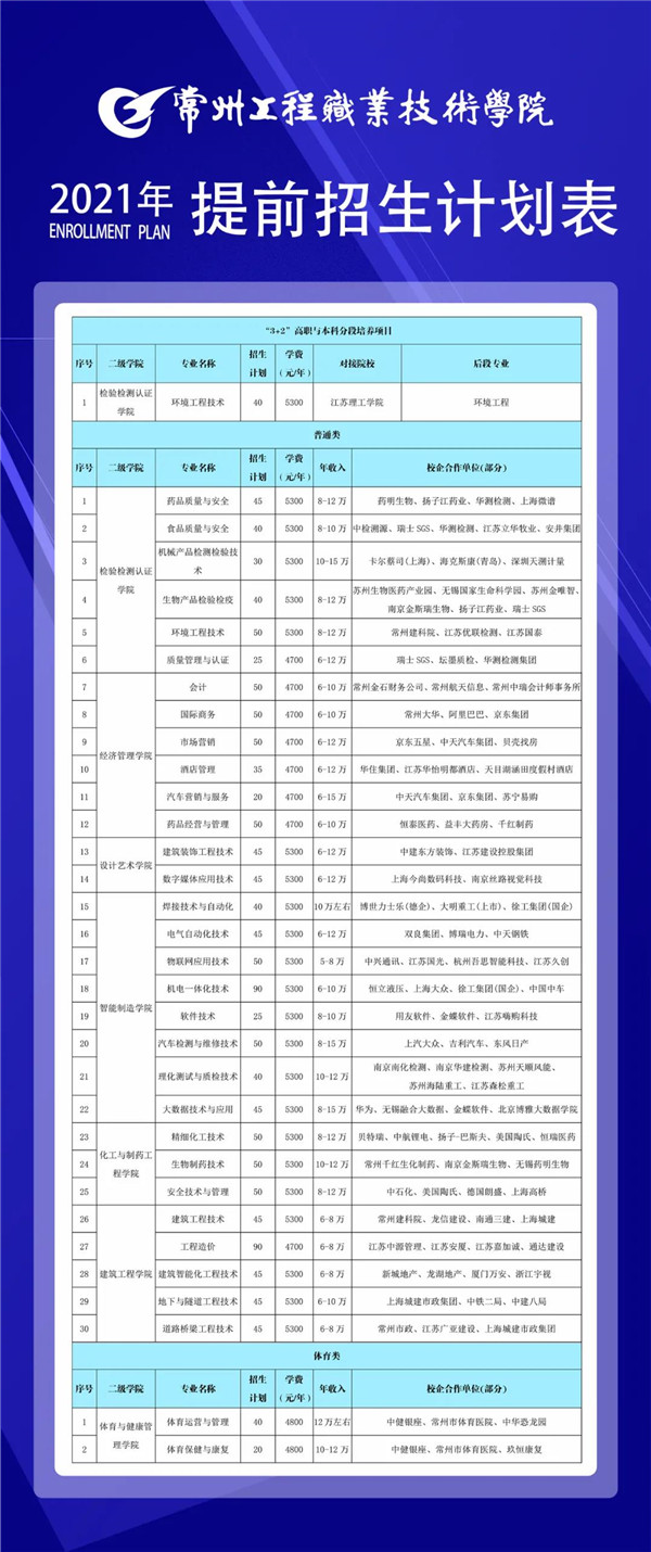 “3+2”本科招生专业计划|2021年常州工程职业技术学院提前招生彩蛋来喽