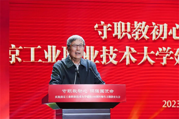 5月15日上午,“守职教初心·担强国使命”庆祝南京工业职业技术大学建校105周年师生主题教育大会在学校仙林校区体育馆隆重举行。学校创始人黄炎培之孙,第十届、十一届全国政协副主席,全国工商联原主席黄孟复,江苏省政协办公厅副主任朱绍云出席大会。