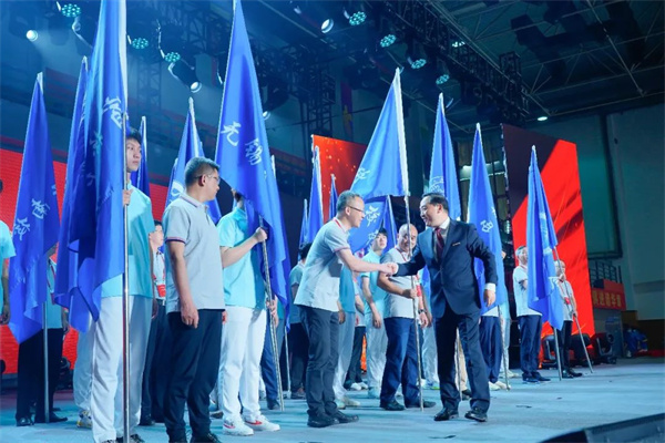 会上,学校校友总会会长吴学敏为全国各地28个校友会会长授旗。