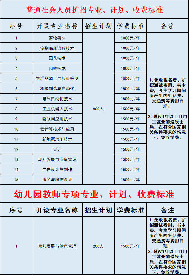 三、招生专业、计划、收费标准