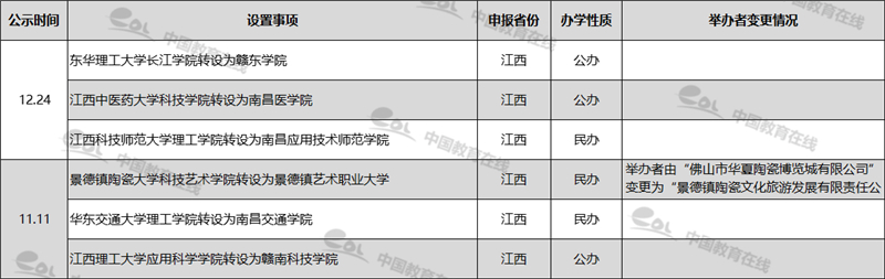 2020年至今金博宝最新官方网站查询网址 已公示五批拟同意设置本科高等学校名单,江西省共计6所名单如下:
