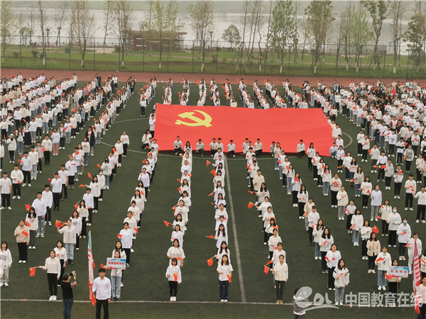 仪式最后,千余名师生合唱《没有共产党就没有新中国》,以激昂嘹亮的歌声表达深切的爱党之情。(通讯员/卢思涵、陈美玲 摄影/黄愈)