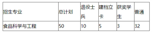 学校2022年专升本招收专业为食品科学与工程,对应“本科招生专业门类及专业类”为“08工学下的0827食品科学与工程类”,总计划50名。