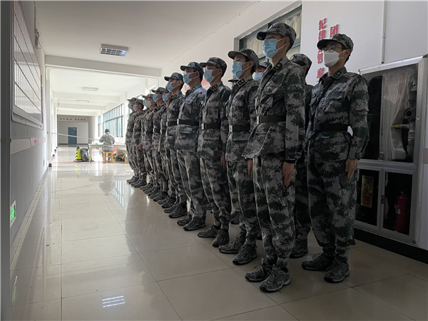 疫情防控前两天,时间紧任务重,男生负责全天站岗,白天在食堂、超市门口执勤,夜晚则在围墙附近巡查,女生则负责后勤保障、物资配送、楼道执勤和消毒。连续站岗20多个小时后,一些队员的脚后跟已经起了血水泡,还有的队员突发急性扁桃体炎,短暂休息后,他们再次外出执勤。“班长,我们可以去换男生吗?我们不怕,我们也可以在围墙站岗!”女生了解情况后,集体请战,要求前往抗疫第一线,展现出“巾帼不让须眉”的担当。