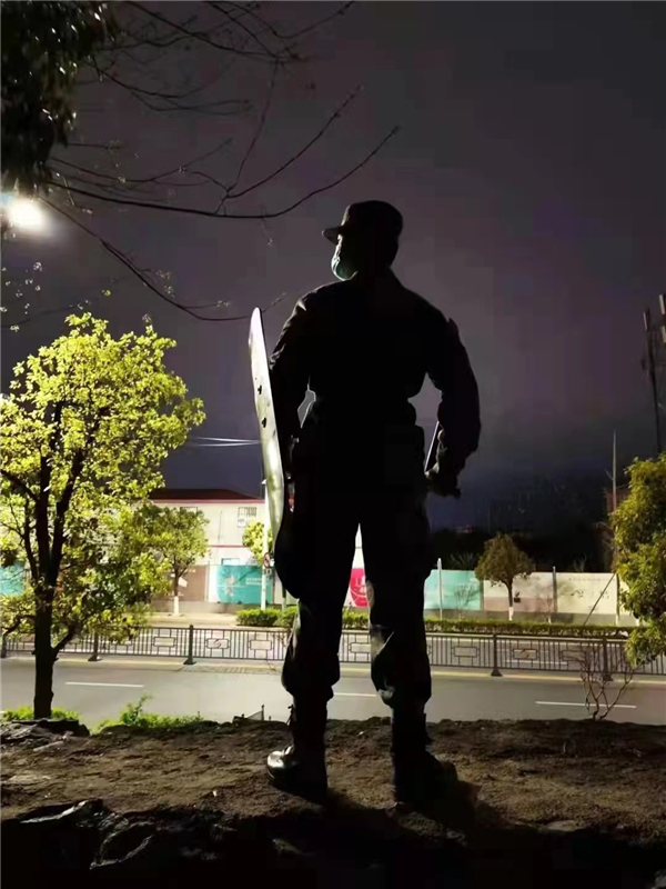 3月20日19时,南昌市气象局发布大风蓝色预警,室外温度仅9℃,风力6-7级。寒冷的夜晚漆黑一片,但在校园围墙附近,有这么一群身着迷彩的人顶着大风坚守在自己的岗位上,时刻警惕是否有外来人员入校。他们不仅要防止校内外人员翻墙出入校园,对翻墙出入人员上报登记,还要劝阻同学不要购买校外外卖。