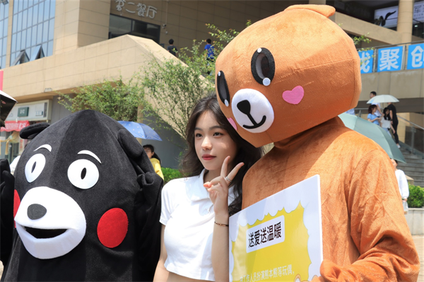 活动现场报名火爆,参与学生络绎不绝。味园广场前,工作人员依据门票为学生们发放气球与纸卡,让同学们将烦恼写出再放进气球,团队合力将气球充破,释放压力,丢掉烦恼。味园右侧的大学生心理成长中心,工作人员为同学们准备的各种解压项目。甘露桥头,设有红色彩虹拱门以及玩偶,学生们可与玩偶进行亲密互动,拥抱合照,诉说压力。