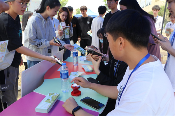 走过甘露桥来到田径场,更是一番热闹景象。工作人员准备了“鼓动人心”“不倒森林”“珠行万里”“顶走emo”“文笔大挑战”等5项活动。学生们在游戏过程中,积极配合、玩出友谊、丢掉烦恼。沿路走到图书馆,工作人员手捧二维码,让同学们进行MBTI测试,这也充分让同学们以更加趣味的方式了解自己,找到适合关爱自己的方式,同时场边设有“神奇卡牌有话说”“很高兴认识你”“笔记知我心”等活动,也让师生们在游戏中结识友谊,理解书中知识,获取生命意义。