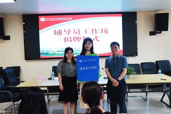 现场,肖接增为辅导员工作坊揭牌,学生处负责人就辅导员工作坊建设指导思想、总体目标、工作机制和具体举措等作了介绍。