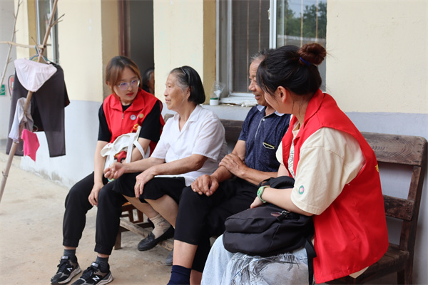 图为江西农业大学南昌商学院“三下乡”志愿服务团员在敬老院陪老人聊天。