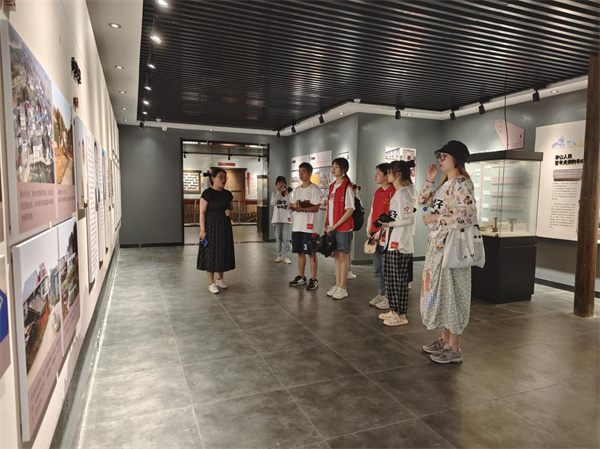 图为红色基因寻访团成员在听讲解员介绍涂山村史馆中存放的历史物件。