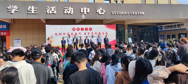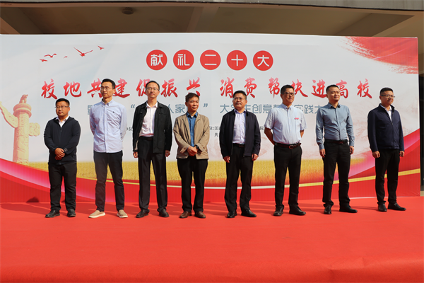 在党的二十大胜利召开的喜庆日子里,为积极响应党中央乡村振兴的号召,促进校地共建,深化产教融合,强化社会服务,助力乡村振兴,10月17日上午,校地共建促振兴、消费帮扶进高校暨首届“坂上人家杯”大学生创意营销实践大赛启动仪式在江西师范大学科技学院大学生活动中心前广场举行。共青城市副市长周传友,江西师范大学科技学院党政班子成员彭隆辉、肖接增、陈志丹、熊南菲出席仪式,共青城市有关部门和江益镇负责人、学院有关单位负责人和师生代表200余人参加仪式。仪式由熊南菲主持。