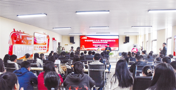 竞赛集知识性、趣味性和互动性于一体,题型丰富,内容广泛,涵盖了党的二十大报告、新修订的党章等内容。在答题环节,选手们冷静思考、沉着应答,大家对答如流,对相关知识熟记于心,现场气氛高涨,比学赶超氛围浓郁,参赛选手们冷静思考,竞赛氛围紧张而激烈,你追我赶争第一,充分展示了辅导员队伍良好的精神风貌。在附加题环节,选手们既拼“手速”,又拼临场反应和知识储备。现场氛围紧张而热烈,不时传来阵阵掌声。