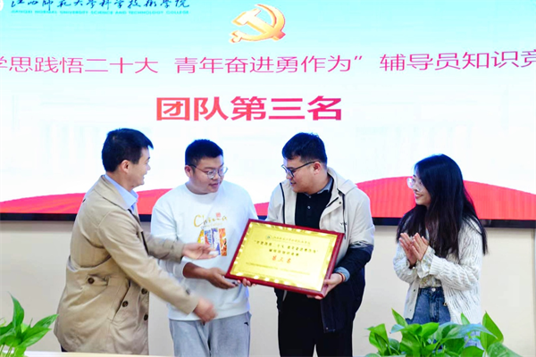 11月8日,一场以“学思践悟二十大 青年奋进勇作为”为主题的辅导员知识竞赛如火如荼进行。江西师范大学科技院领导彭隆辉、李菲、张小桃,党委委员熊南菲出席,来自教学院的90余名辅导员参赛并观赛。