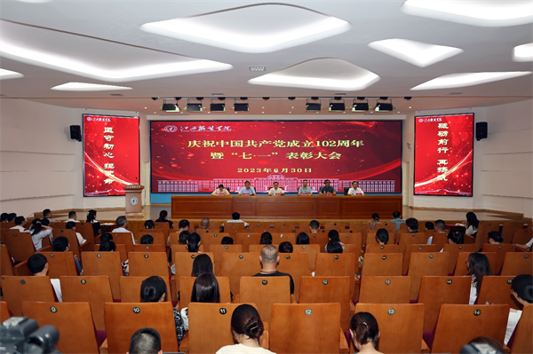 七月的党旗冉冉升起,在中国共产党第102个生日来临之际,为表彰先进,激励广大党员践行新担当、展现新作为,6月30日下午,江西服装学院庆祝中国共产党成立102周年暨“七一”表彰大会在思贤楼报告厅隆重召开。党委书记陈付龙出席会议并讲话,学校党委委员、全体教职工党员出席大会,大会由党委副书记唐新强主持。