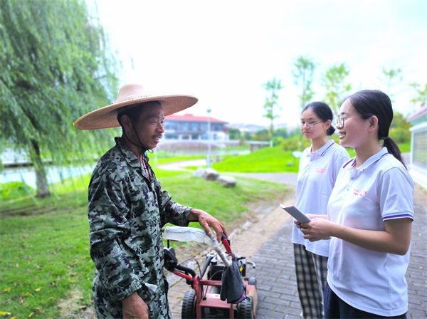 迎着酷暑暖风,聚村头,走田间,调查研究为农民。深入村委会、农家庭院,点对点沟通、面对面交流,了解每户劳动力就业及农作物种植情况,把有关乡村振兴的方针、政策带入千家万户,实践队将课堂学习和乡村实践紧密结合,学习“自找苦吃”精神,厚植爱农情怀,练就兴农本领,在“自找苦吃”中收获甘甜。
