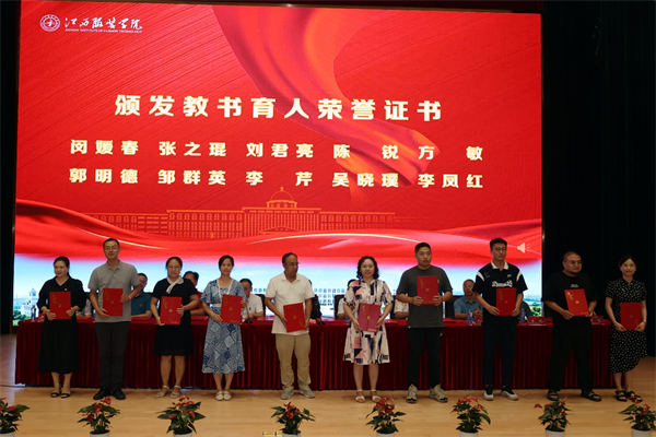 与会领导为“管理育人”“教书育人”“服务育人”先进个人颁发了荣誉证书。与会教师向获得表彰的优秀集体与个人送上了热烈的掌声和诚挚的祝贺。学校号召,全校教职工要以受表彰的同志为榜样,以更加饱满的热情,更加昂扬的斗志,更加良好的作风,团结奋进,扎实工作,为把学校建成“特色鲜明的高水平应用型大学”而努力奋斗!
