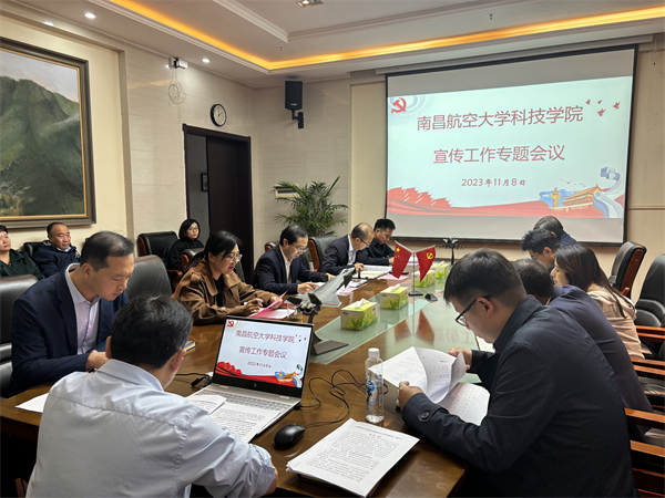 近日,南昌航空大学科技学院在行政楼413会议室召开宣传工作专题会议,党委书记伏燕军出席会议,党政办、纪委办、党委宣传部、党委组织部、教科处、人事处、学工处、团委、招就处、财务处、保卫处、后勤基建处、现信中心、图书馆主要负责人,各学部党总支书记、直属支部书记参会,会议由党委副书记、副院长张琦主持。